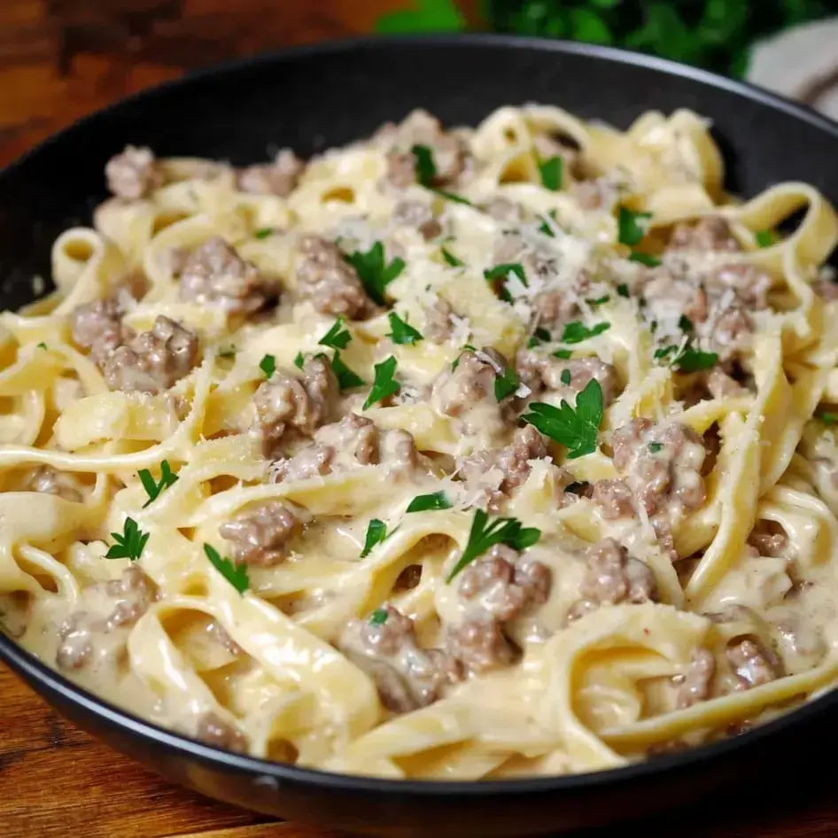 Tender chicken and noodles in creamy garlic butter sauce, perfect for a cozy, satisfying meal.