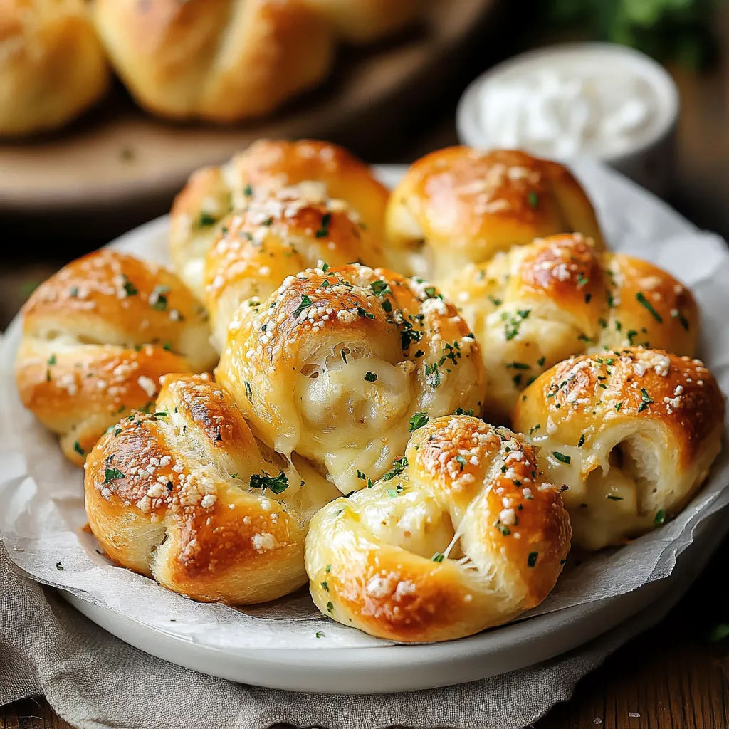 Fluffy, puffy bread knots hugging melted cheese and coated with flavorful garlic butter make an addictive treat that's great for any party. These homemade goodies combine the warmth of freshly baked bread with the joy of gooey, stretchy cheese in each mouthful.