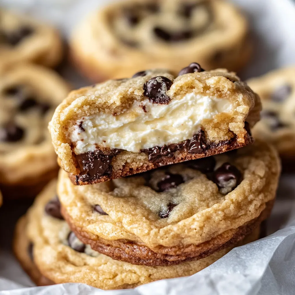 Indulgent chocolate chip cookies hiding a velvety cheesecake center offer a mouthwatering blend of two beloved treats. Each bite delivers crisp edges with a tender middle, while the tangy cream cheese surprise adds an exciting flavor kick that'll make these cookies stick in your memory forever.
