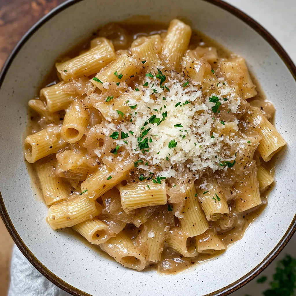 Taking the classic French onion soup and turning it into a filling pasta dish creates the ultimate comfort food. This one-pot French onion pasta combines sweet, slow-cooked caramelized onions with perfectly cooked mezze rigatoni, all wrapped in a thick, Gruyere-filled sauce that brings all the flavors of the famous French soup to your table.